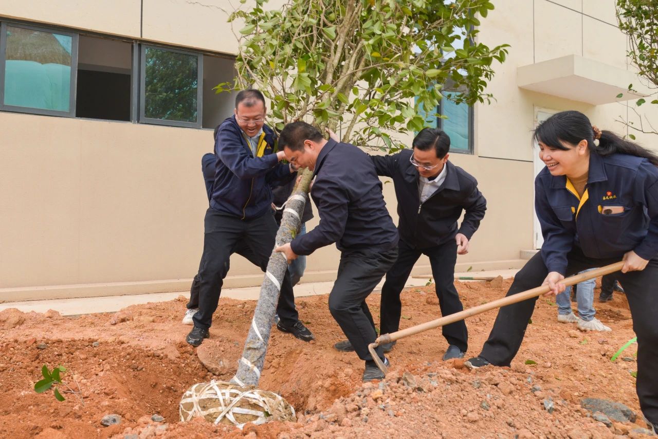 人勤春來早,植綠正當時。3月22日上午,公司領導劉少華、葉敬敏、葉成林和由黨支部、工會、婦聯以及各部門員工代表組成的嘉元科技植樹志愿者隊伍約100人,到位于梅縣區(qū)城東鎮(zhèn)的嘉元時代廠區(qū)開展植樹活動。志愿者們熱情高漲、干勁十足,紛紛揮鍬鏟土、栽植新綠、扶樹填土、圍堰澆水,種下金絲楠木、秋楓、桂花等大樹綠植,用辛勤勞動為“嘉元林”再添新綠?,F場一棵棵樹苗迎風挺立、錯落有致,呈現出生機勃勃的動人景象,成為城東基地一道靚麗宜人的綠色風景線。